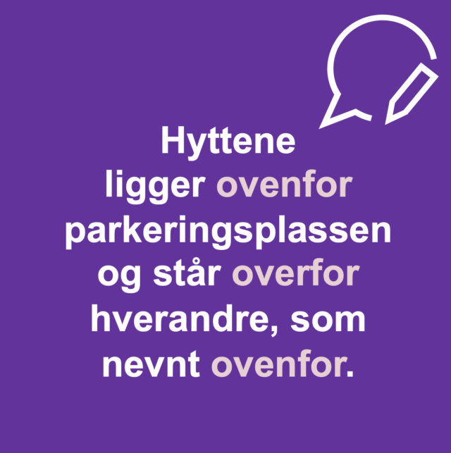 Ovenfor: høyere oppe. Overfor: vis-à-vis. bokmanuskorrekturmasteroppgavenettsidevaskoversettelserettskrivingrettskrivningspråkvaskstavetipsteksttekstforfatter